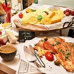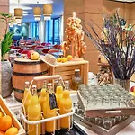 Ежедневно для гостей сервируется вегетарианский завтрак. Гости могут пообедать в одном из 2 ресторанов на территории. В ресторане предлагают разнообразие легких блюд. В лаунж-баре ежедневно подают легкие напитки. Рядом есть несколько ресторанов, например Кайзер и Salo.